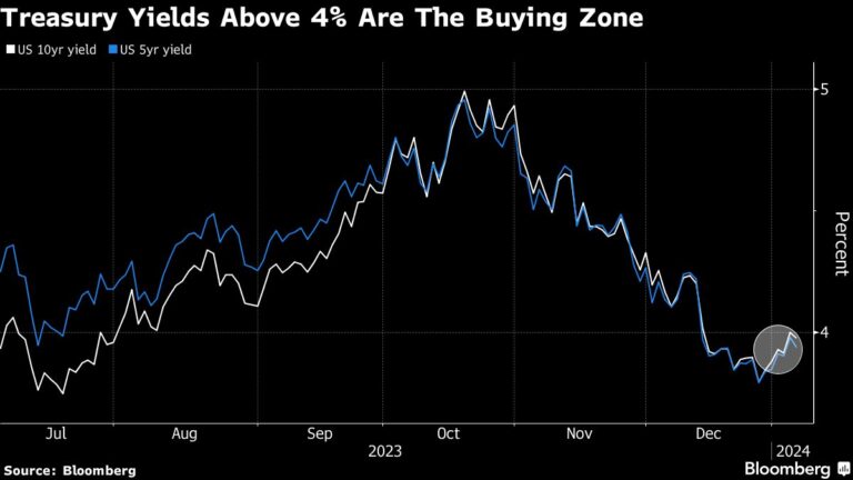 (Bloomberg) — Traders betting on a bond rally in 2024 are undeterred by the recent pullback, seeing it as an opportunity to grab higher yields before the Federal Reserve starts cutting interest rates.